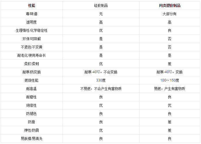 首先,產品采用的是純硅膠生產,熱加硫型固態硅膠撕裂強度范圍介于9-55 kN/m之間,伸長率范圍在90到1120%之間,柔韌性強彈性好確保使用問題。硅膠是完全環保無毒的,使用過程中,不會釋放出有毒氣體。更多的詳情信息,請看下面的表格。